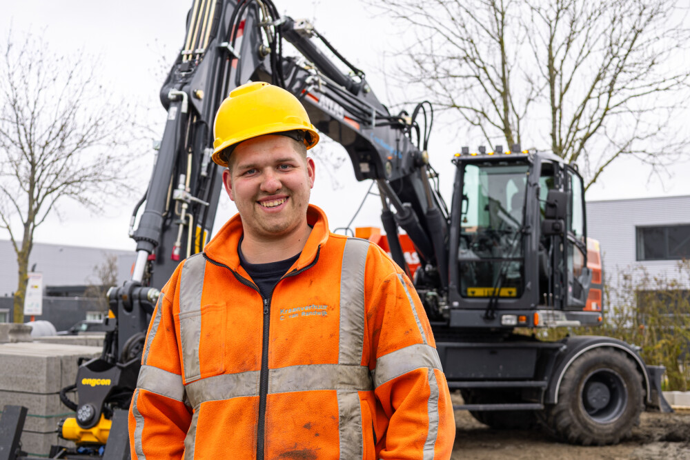 Deze Atlas 165W is geleverd aan C. van Randwijk & Zn uit Lopik. Machinist Bryan is enthousiast om weer op een Atlas mobiele graafmachine te mogen zitten en heeft de machine zelf samengesteld.