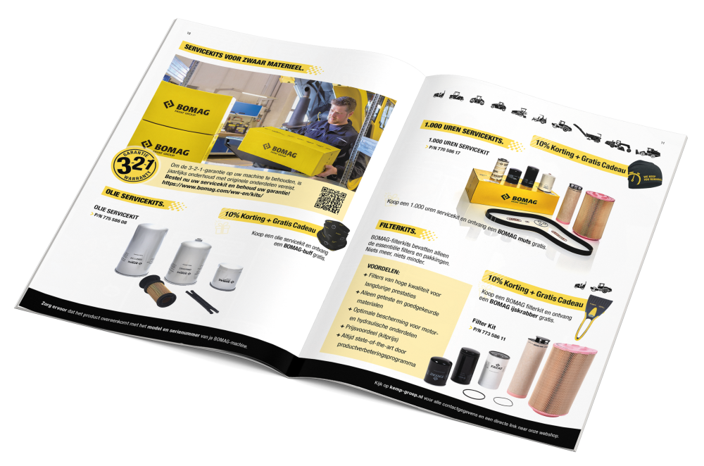 Tot 15% korting op BOMAG-onderdelen en servicekits! Bekijk de brochure voor alle actieproducten en bestel het eenvoudig via onze webshop. Je kunt hiervoor een account aanmaken of inloggen. Hulp nodig bij de webshop? Neem contact met ons op via 030 - 666 60 66.