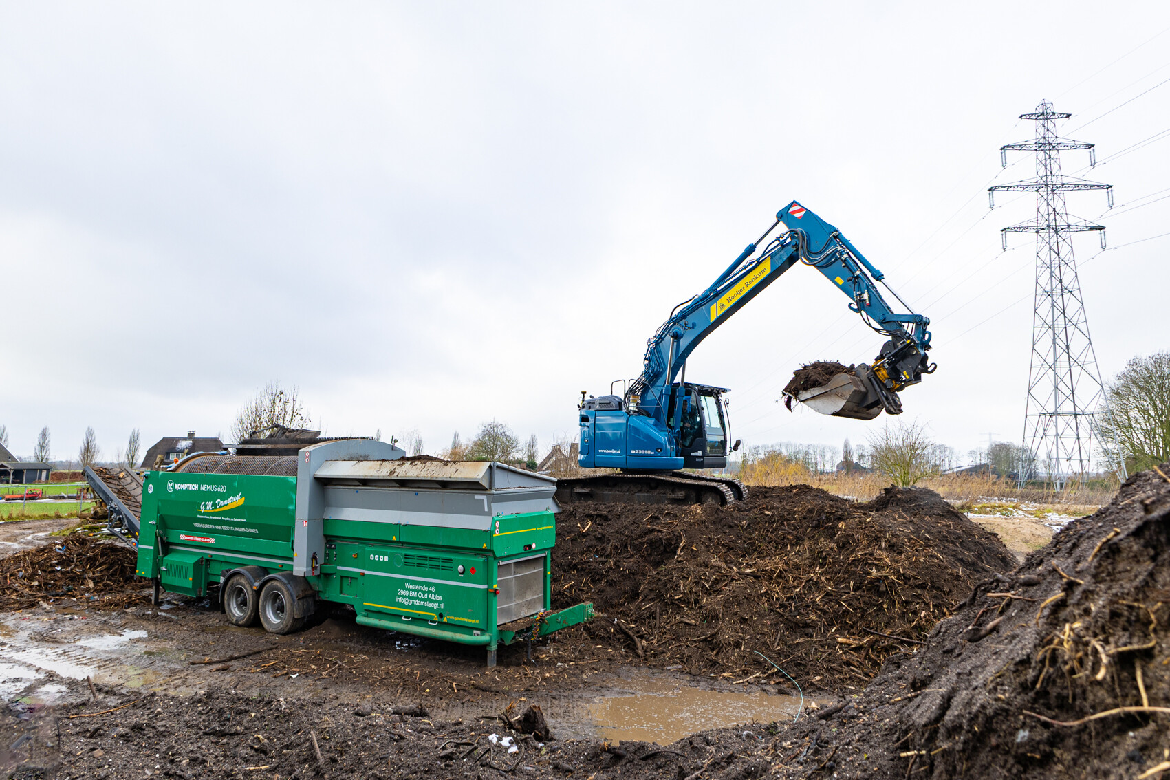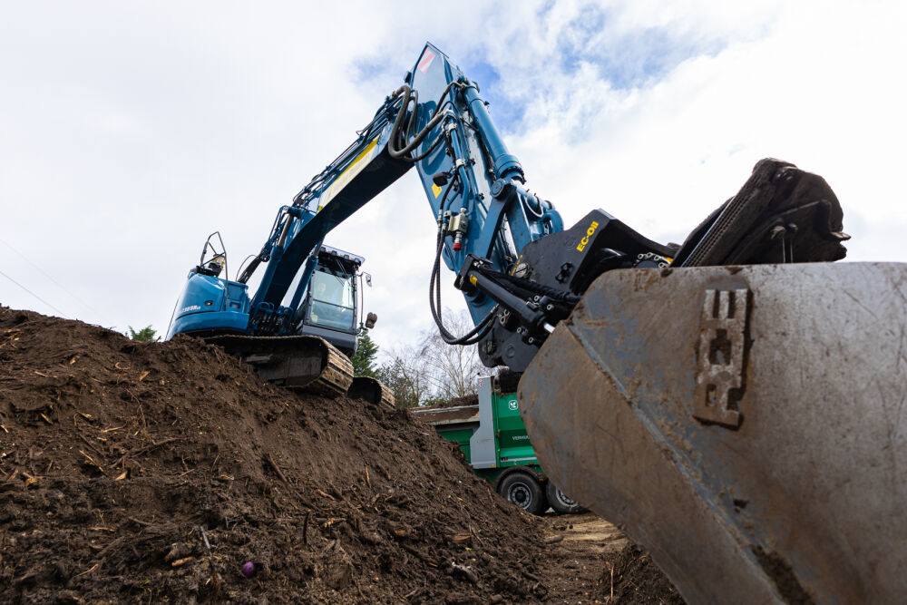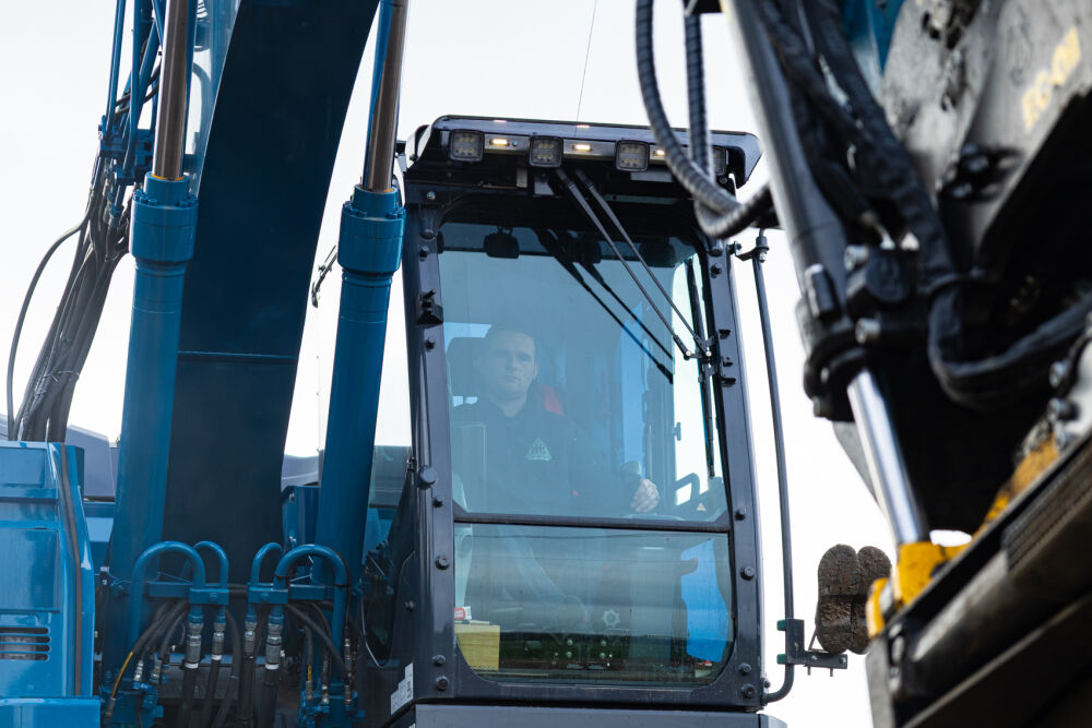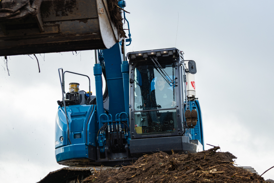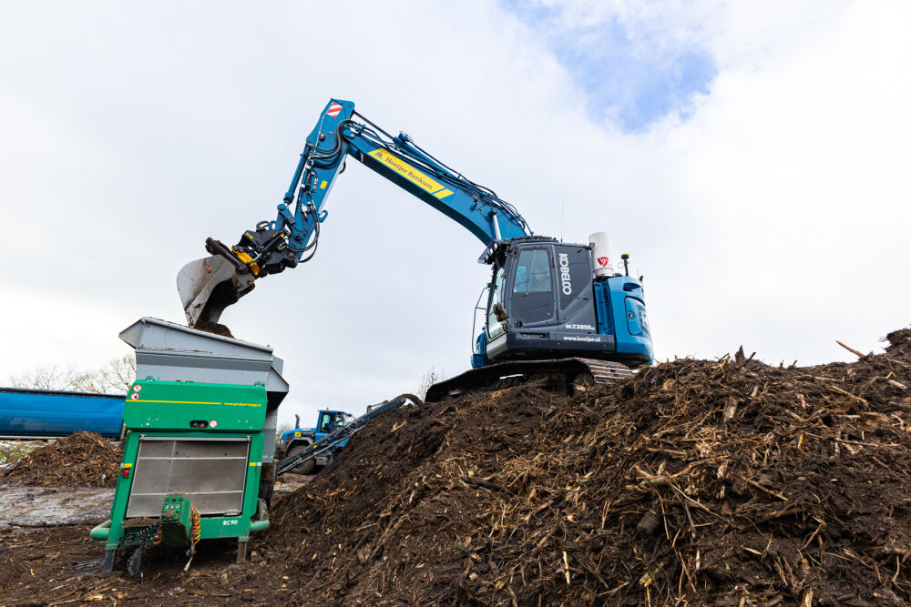 Deze nieuwe Kobelco SK230SRLC-7 is door Kemp Groep volledig opgebouwd naar de eisen en wensen van Hooijer Renkum. Denk hierbij aan o.a.; een Engcon draaikantelstuk met gripper, voorbereiding GPS, klompenhaak, gereedschapskist op de onderwagen, extra LED werklampen, automatische smeersysteem, geblindeerde zij- en achterruit, extra lasthaak aan de binnenzijde van de lepelsteel, afgeschuinde rupsplaten en tot slot is de rupsgraafmachine gespoten in de kenmerkende bedrijfskleur.