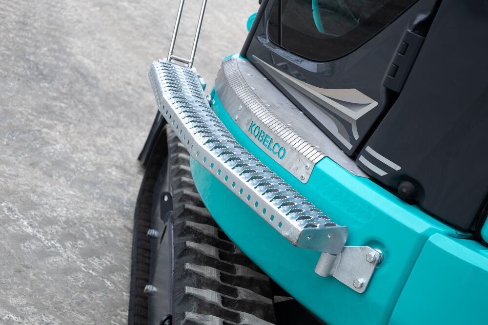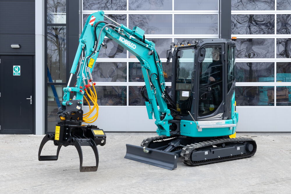 De Kobelco SK26SR-7 is door Kemp Groep onder andere voorzien van een hydraulische snelwissel, trekhaak in het schuifblad, extra LED-werkverlichting en een gereedschapskist op de onderwagen.