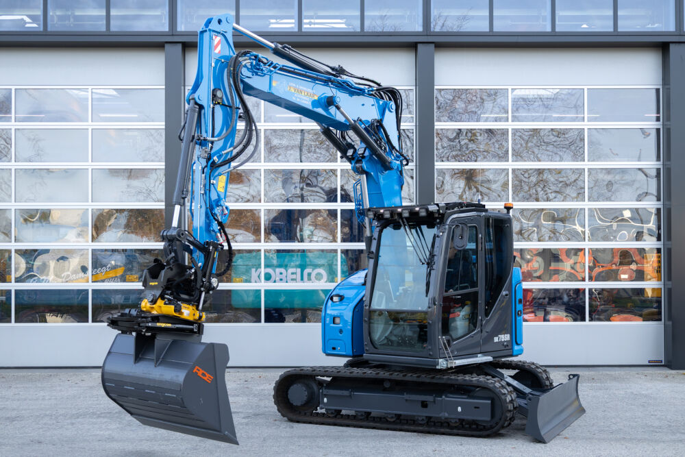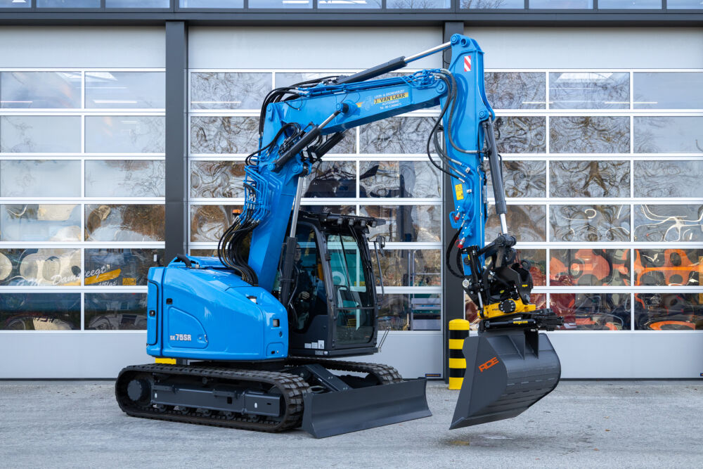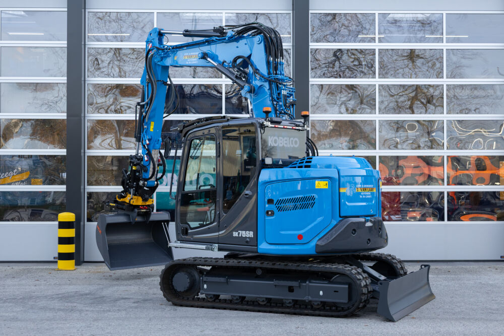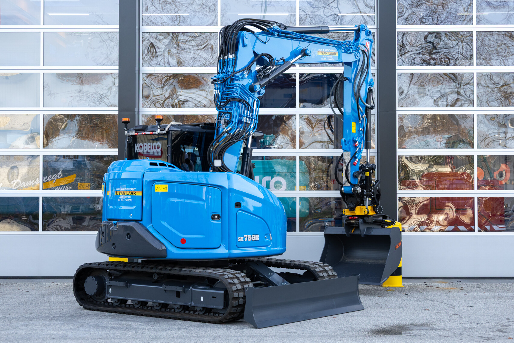 De al zeer complete Kobelco SK75SR-7 rupsgraafmachine is volledig naar de wensen van Van Laar opgebouwd. Denk hierbij aan o.a. een Engcon draaikantelstuk met gripper, Engcon GPS, extra functies, extra LED-werkverlichting, opklapbare treeplank met klompenhaken, automatisch smeersysteem en een gereedschapskist op de onderwagen.