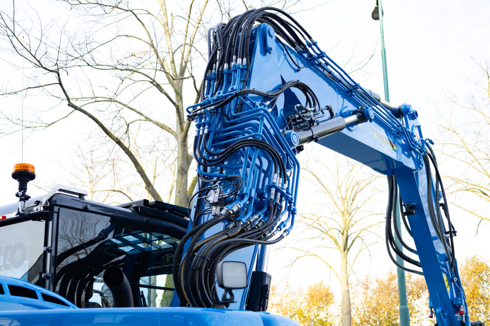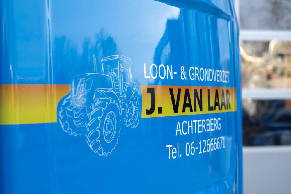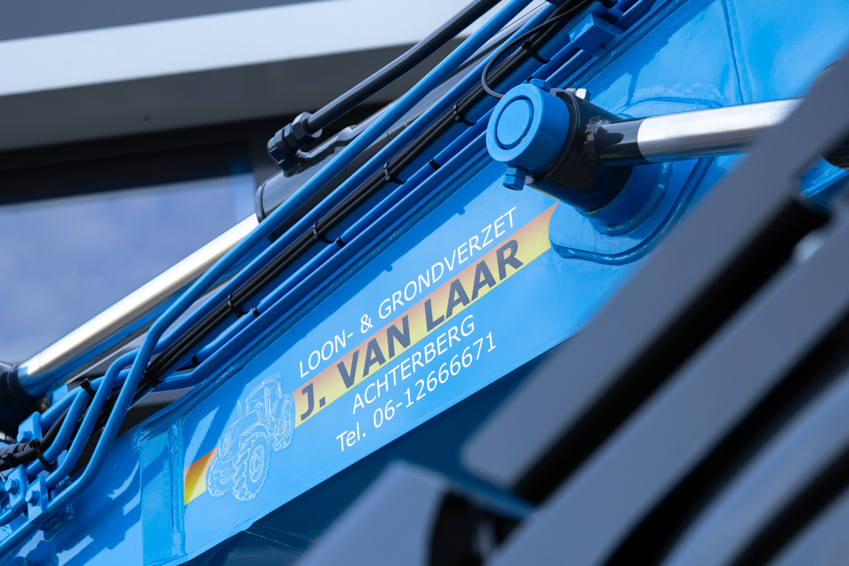 Daarnaast is de Kobelco door de reclameafdeling van Kemp Groep voorzien van professionele belettering en is de machine afgeleverd met extra bakken.