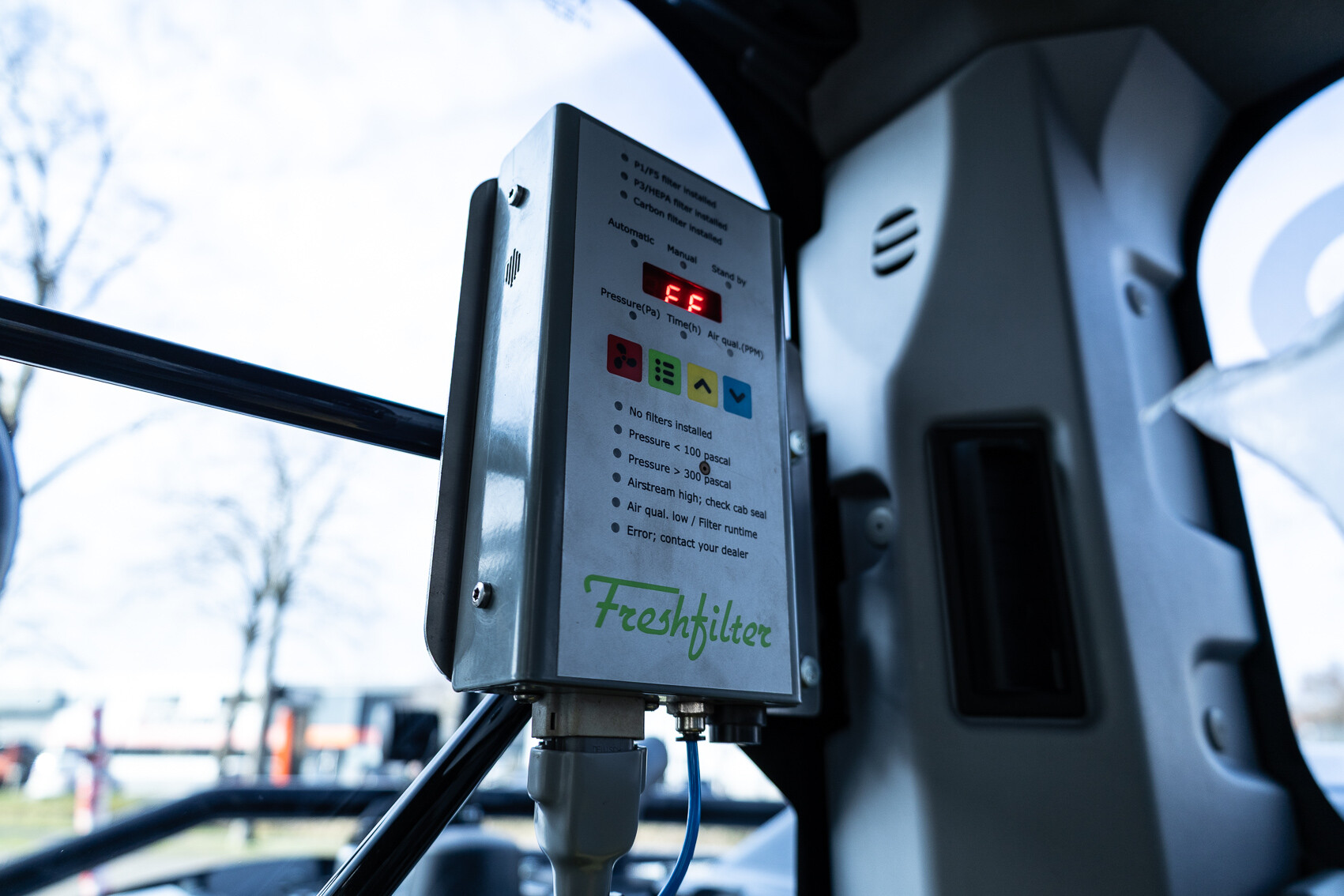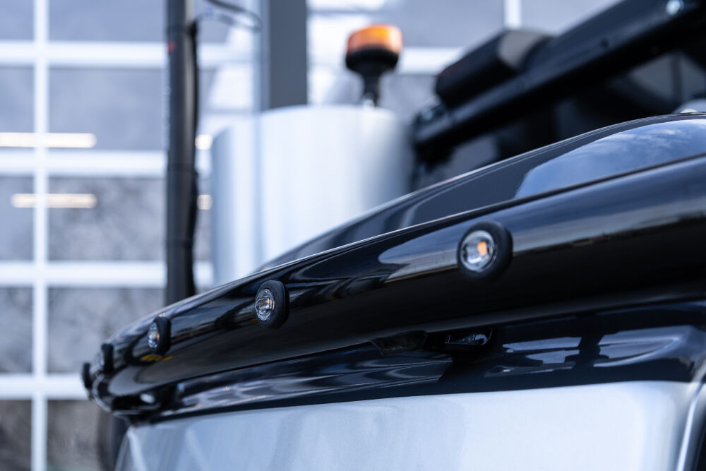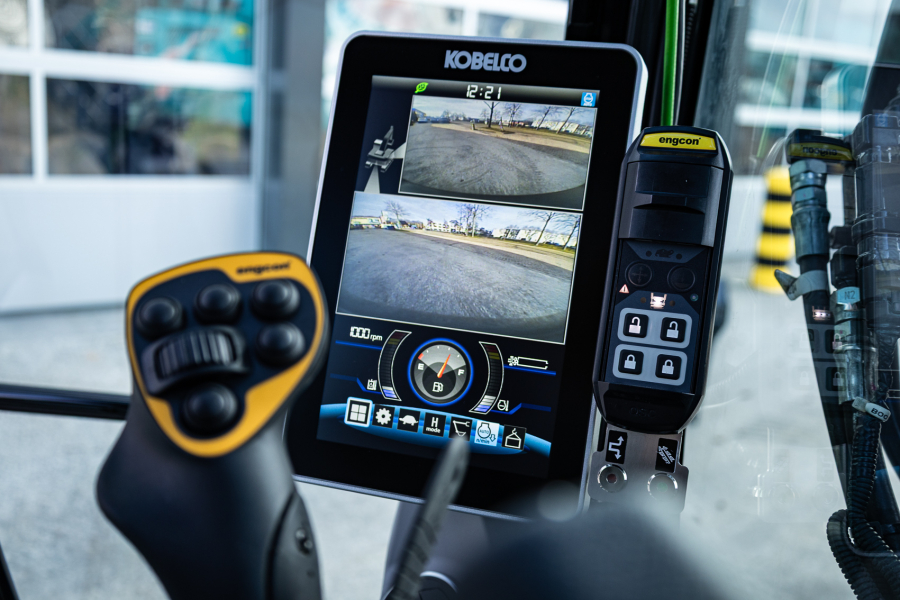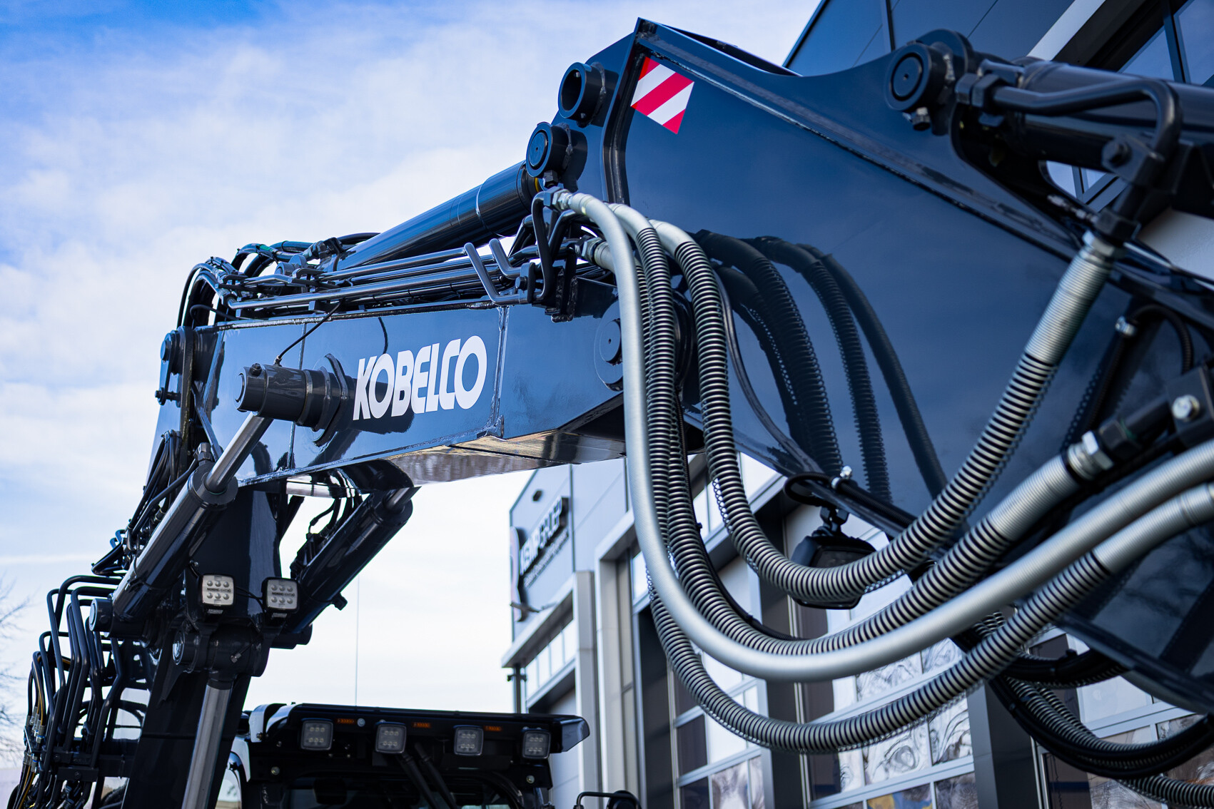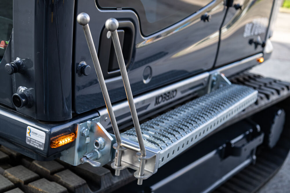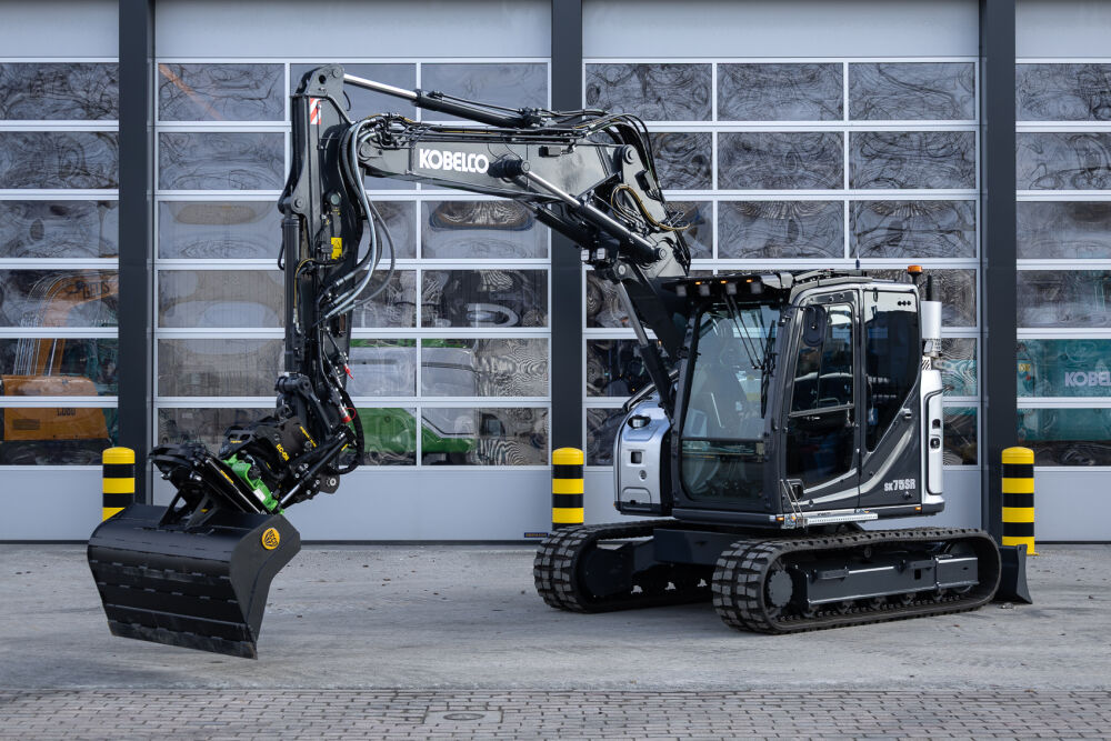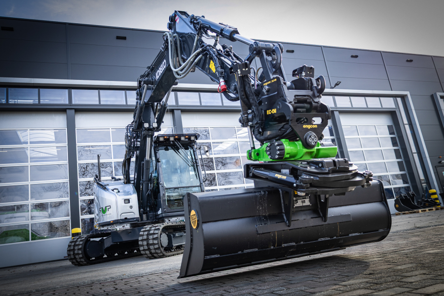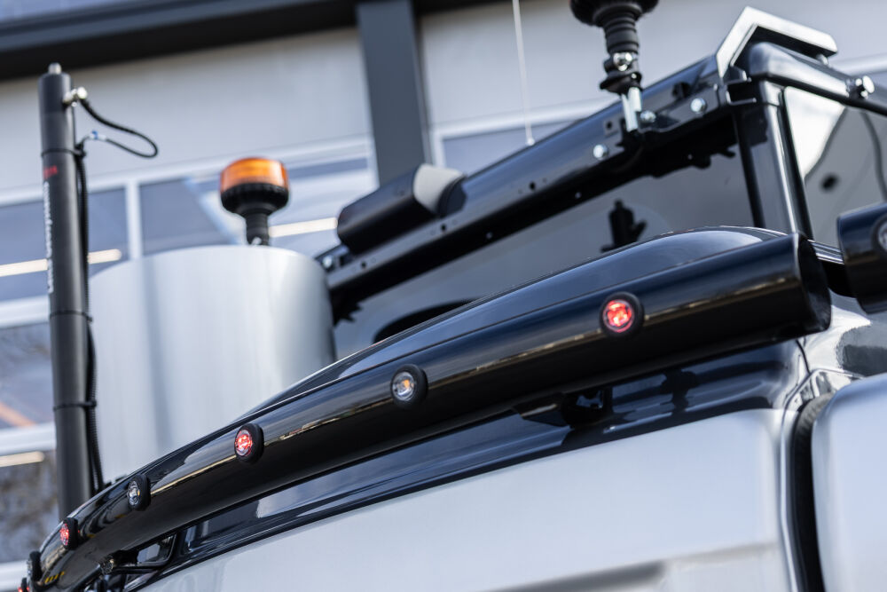 Ook is de machine voorzien van extra werkverlichting, een automatisch smeersysteem, een FreshFilter overdruksysteem en een startonderbreker. Daarnaast is er gekozen voor comfort- en afwerkingsopties zoals een opklapbare treeplank bij de cabinedeur met klompenhaken, eengereedschapskist op de onderwagen 27MC, geblindeerde ruiten en MittX sierbeugels met contourlampjes. Tot slot is de machine volledig in de bedrijfskleuren gespoten, voorzien van belettering, voorbereid op Leica 3D GPS en geleverd met diverse uitrustingsstukken van Beco, waaronder een brede bak, graafbak, banaanbak en palletvorken.