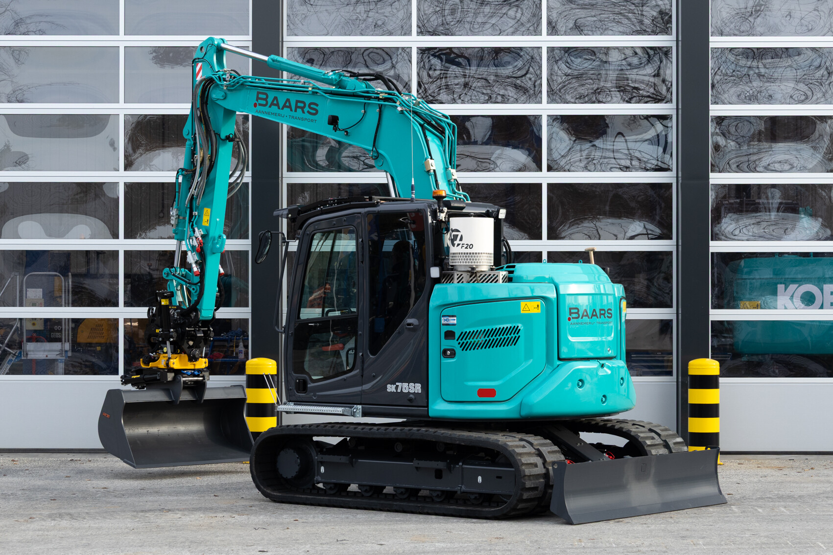 De professionals van Kemp Groep hebben de Kobelco SK75SR-7 op speciale 65 cm brede rubber rupsen o.a. voorzien van meerdere LED-werklampen, extra functies, een hydraulische snelwissel, Engcon draaikantelstuk met gripper en een automatisch smeersysteem van Groeneveld. Voor het gemak van de machinist is er een opklapbare treeplank met klompenhaken, geblindeerde zij- en achterruit en een gereedschapskist op de onderwagen. Daarnaast is de machine voorzien van belettering en afgeleverd met een brede bak en een puinriek.