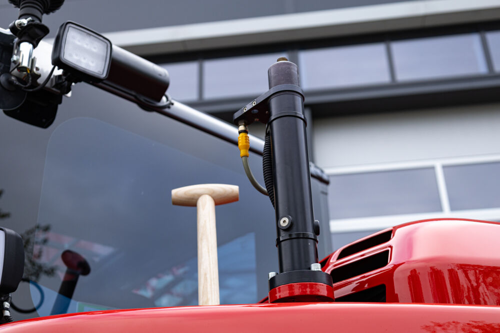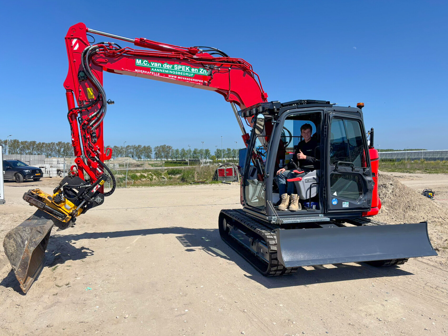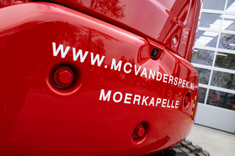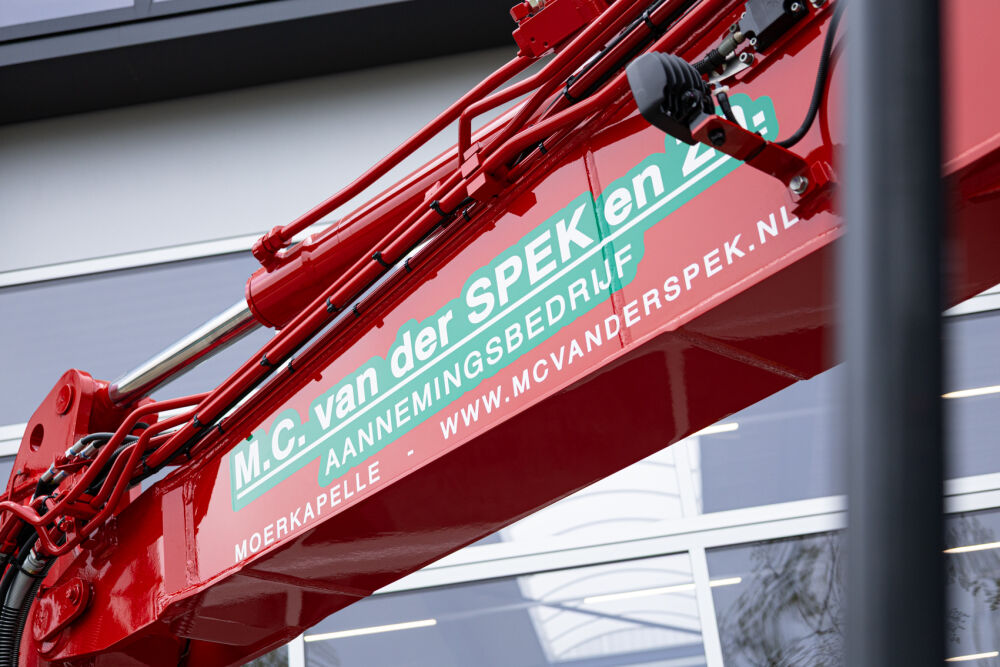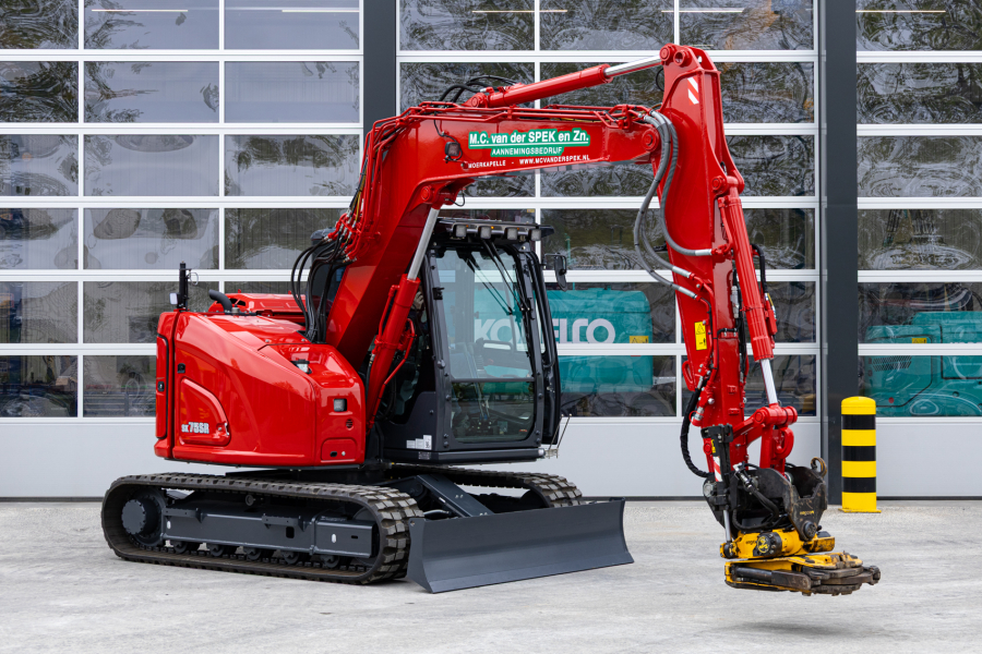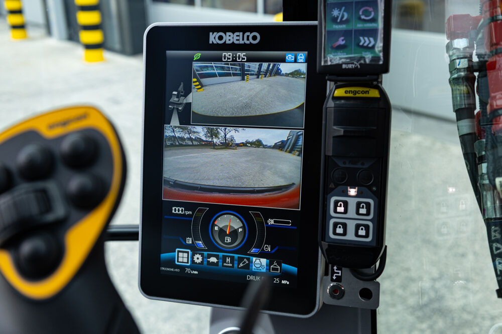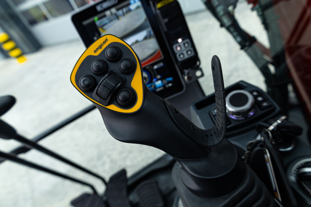 Het bestaande Engcon draaikantelstuk is bij Kemp Groep overgezet inclusief nieuwe kabelboom, joysticks en module. Ook het Topcon 3D GPS-systeem is van de oude machine overgezet. Op het gebied van bediening en communicatie is de machine voorzien van een Bury CC9056 Plus carkit met Bluetooth. Verder is de machine voorzien van een automatisch smeersysteem, startonderbreker, geblindeerde achterruit en zijruiten, een demontabele treeplank voor de cabinedeur en een gereedschapskist op de onderwagen. LED-werklampen zijn aangebracht voor op de cabine, achter op de cabine en aan de binnenzijde van de lepelsteel, aangevuld met een zwaailamp achter aan de cabine. Overige toevoegingen zijn een extra lasthaak aan de binnenzijde van de lepelsteel, klompenhaken, slangbreuk op de bakcilinder en een lekolieleiding van 15 mm.