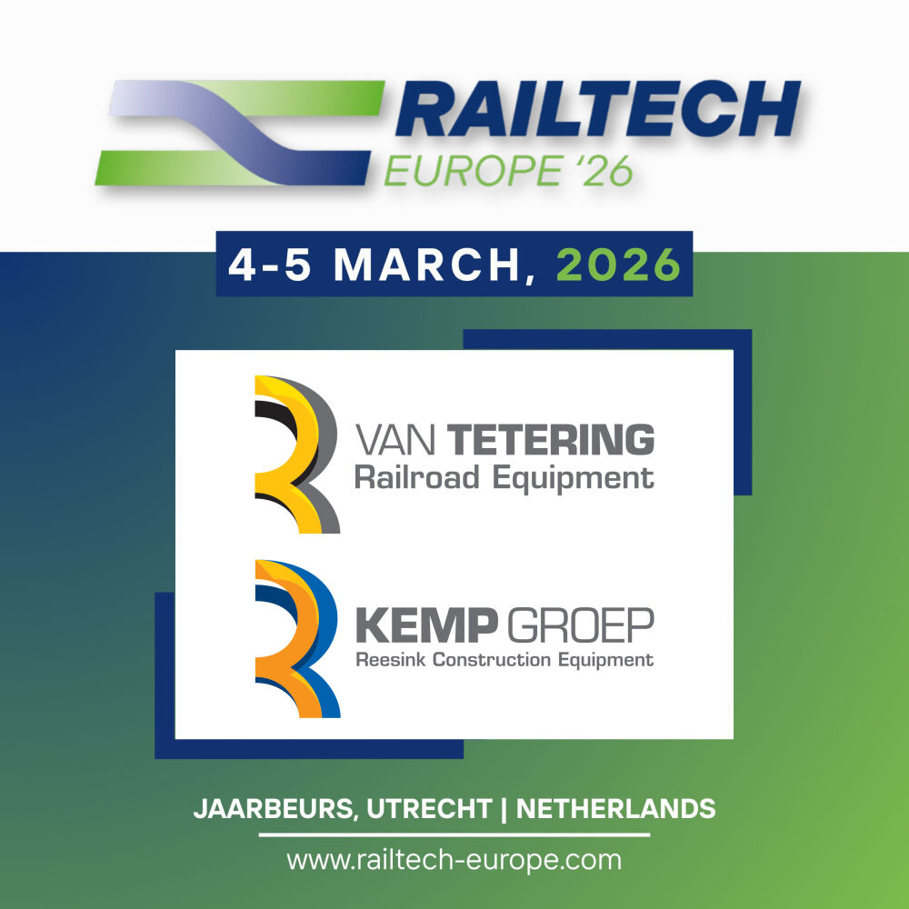 Bezoek stand 5.014 tijdens RailTech Europe 2026 op 4 & 5 maart in de Jaarbeurs in Utrecht! Van Tetering Railroad Equipment en Kemp Groep staan gebroederlijk op één stand. Wij verwelkomen u graag. Tot ziens in Utrecht.