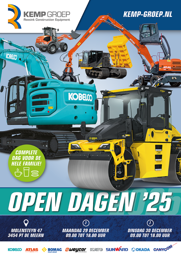 Kemp Groep houdt op maandag 29 & dinsdag 30 december Open Dagen! Ontdek de nieuwste machines, innovaties en het volledige aanbod van Kemp Groep en Huur&Stuur. U bent welkom tussen 09:00 en 18:00 uur aan Molensteyn 47 in De Meern. Houd deze pagina in de gaten voor alle praktische informatie!